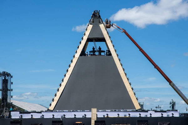E, desta vez, o palco da celebração terá um design diferente. Trata-se de uma pirâmide com estrutura tecnológica de ponta e cerca de 30 metros de altura.