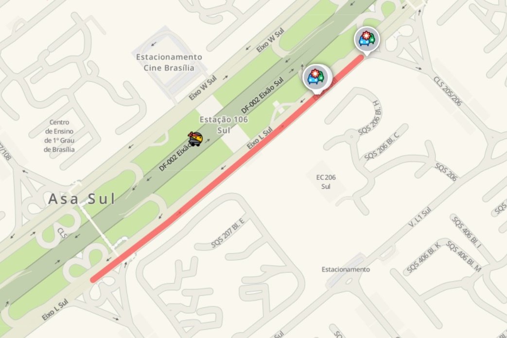 O trânsito entre as quadras 208 e 205 Sul — rumo à Rodoviária — precisou ser desviado, e o ideal é que, se possível, os motoristas busquem rotas alternativas.