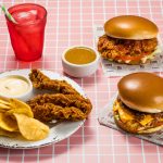 Você pode escolher entre o sanduíche Hot Crispy Chicken Tabasco® Sriracha, uma mistura de frango empanado e crocante com cerca de 115 g, servido com alface, tomate, picles, maionese defumada e molho hot feito com Tabasco® Sriracha Sauce e mel, no pão brioche, e o Smoked Honey Mustard Chicken, que apresenta peito de frango empanado e crocante, com cerca de 115 g, servido com alface, tomate, picles, maionese defumada e molho Honey Mustard, no pão tipo brioche.