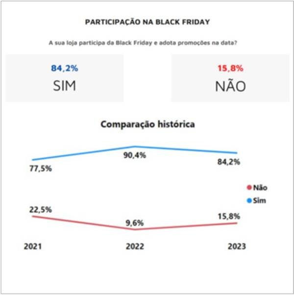 De acordo com levantamento realizado entre os dias 18 de setembro e 5 de outubro, 84,2% das empresas de 16 segmentos do comércio de bens, serviços e turismo irão participar das promoções na última semana de novembro.