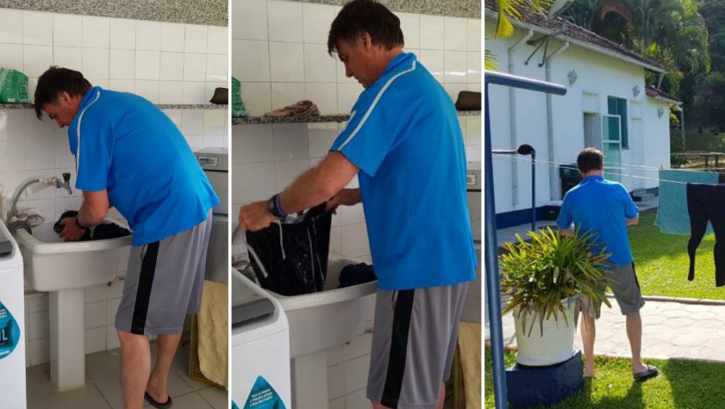 No início da tarde, a assessoria divulgou fotos de Bolsonaro lavando roupas de mergulho, ao lado máquinas de lavar, e as pendurando no varal. A área militar foi escolhida pelo presidente eleito para passar o Natal com os familiares. Ele deve voltar para casa somente na quarta (26).