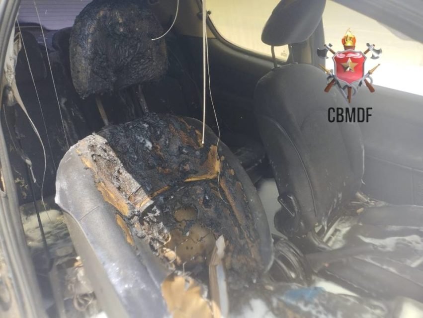 Interior de carro pega fogo no Arapoanga, em Planaltina