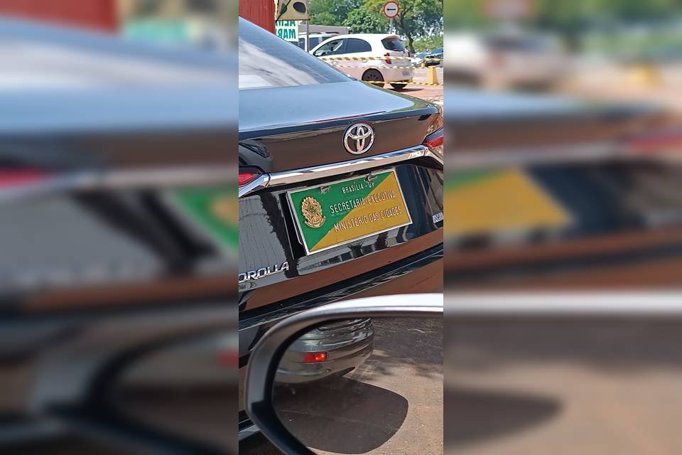 O veículo, um Toyota Corolla preto vinculado à Secretaria de Cidades da pasta, estava parado em uma vaga em frente ao edifício Central Park, no Setor Comercial Norte (SCN).