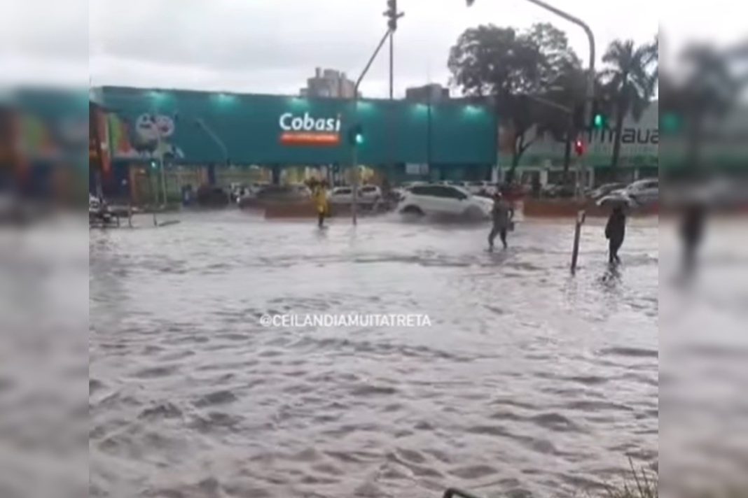 Ruas ficaram alagadas em diversas regiões da capital federal e carros foram engolidos por buracos que abriram em vias urbanas.