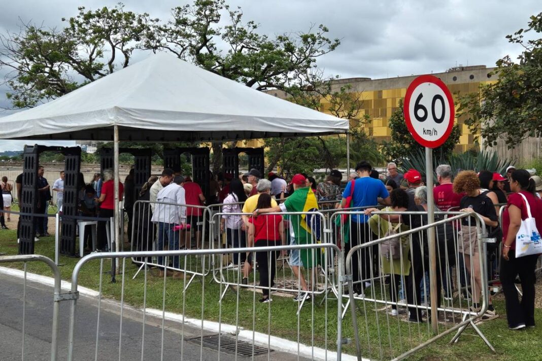 Durante a realização do ato, haverá triagem de segurança para o acesso à Praça dos Três Poderes, não sendo permitidos objetos cortantes ou perfurantes, tais como como garrafas de vidro, armas de qualquer tipo, hastes de bandeiras e quaisquer outros materiais que coloquem em risco a segurança das pessoas e do patrimônio.