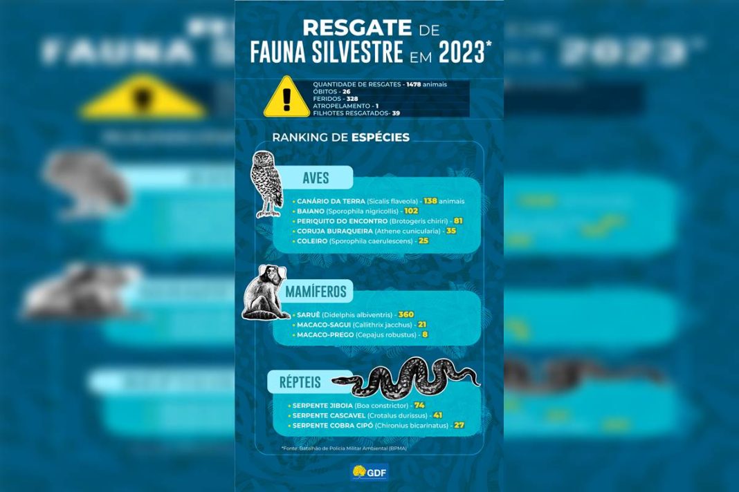 Mais de 1,5 mil animais silvestres foram resgatados pelo Batalhão de Polícia Militar Ambiental (BPMA) de vias que cruzam o Distrito Federal nos primeiros cinco meses de 2024. Esse número já supera todas as ocorrências do tipo registradas em 2023, quando 1.478 bichos foram resgatados pelo BPMA.