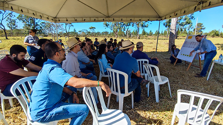 O Dia de Campo foi composto por três estações. Na primeira, foram abordados temas como tecnologia nutricional aplicada às fêmeas precoces, que é um sistema chamado Caliber Beef, de uma empresa parceira na pesquisa coordenada pela UnB, onde foram testados planos nutricionais diferentes.