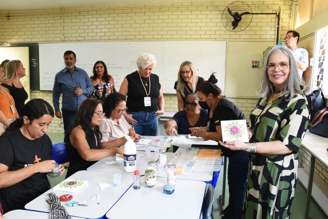 A secretária de Educação, Hélvia Paranaguá (D), ressaltou: “Temos uma escola que oferta educação de qualidade ao estudante de EJA nos três turnos, e que agora oferece educação profissionalizante” | Foto: Mary Leal/SEE