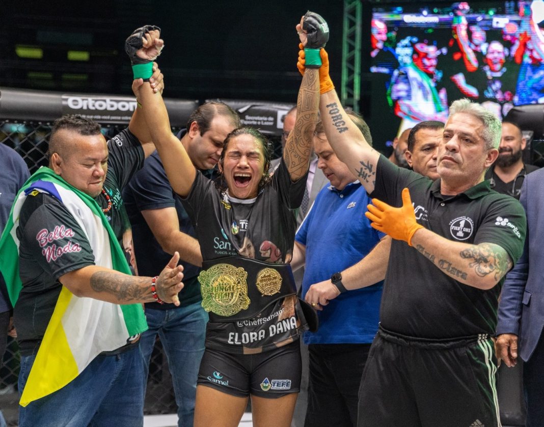 A amazonense Elora Dana enfrentou a carioca Brena Cardozo na luta principal e manteve o cinturão peso-mosca do Jungle Fight | Foto: Divulgação/SEL-DF