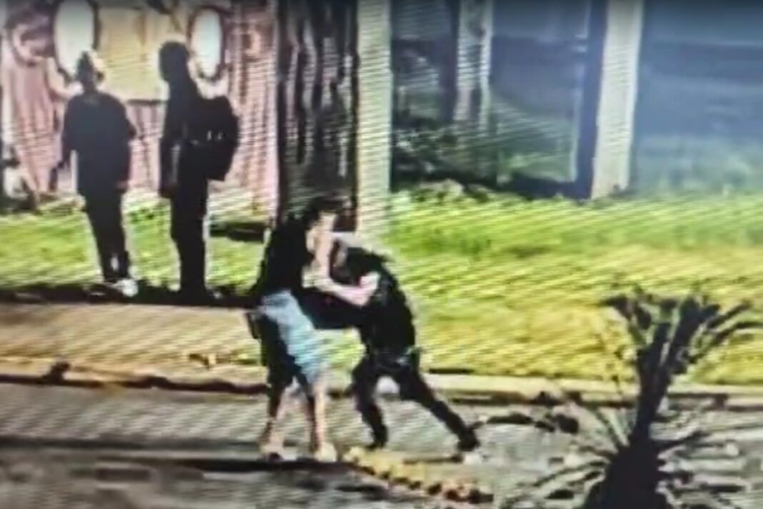 As imagens mostram o momento em que o suspeito parte para cima da vítima. Ele desfere golpes com uma garrafa de vidro e chutes, na tentativa de pegar a mochila do jovem. Para se defender, o rapaz conseguiu pegar um canivete dentro da mochila e atingiu o suspeito — o que lhe causou a lesão no abdômen.
