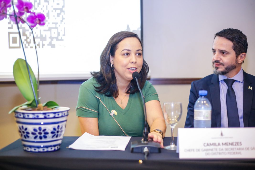 Camila Menezes, chefe de gabinete da SES-DF, reforçou o papel da vacinação para uma proteção coletiva: “A partir do momento em que bebemos da ‘água’ da imunização, nunca mais ficamos sem ela” | Foto: Ualisson Noronha/Agência Saúde-DF