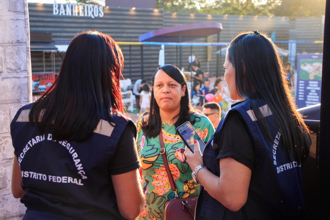 Servidores das secretarias de Segurança Pública e da Mulher atuam em festival, no Parque da Cidade, para acolher e proteger mulheres em eventuais situações de assédio ou importunação | Foto: Divulgação/SSP