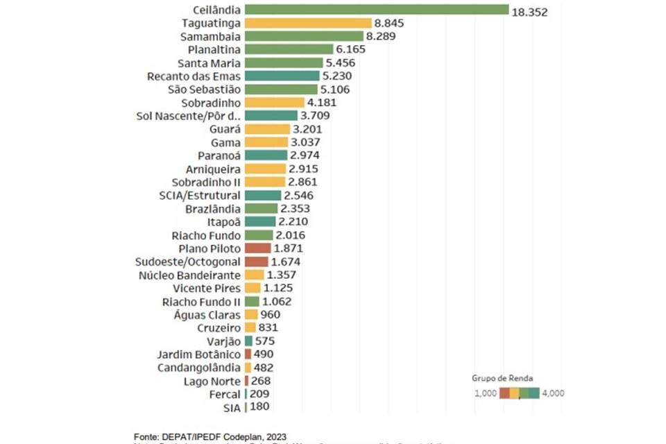Na análise por região administrativa, o problema é mais presente em Ceilândia, Taguatinga, Samambaia, Planaltina, Santa Maria, Recanto das Emas e São Sebastião.