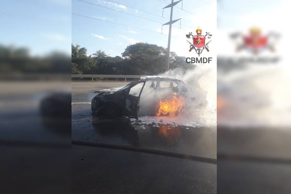 Uma motorista de 65 anos passou por momentos de tensão, após o carro em que ela dirigia, um Ford Fiesta cinza, começar a pegar fogo ainda em movimento. O incidente ocorreu na tarde deste sábado (18/5), na Ponte do Bragueto, na Asa Norte.