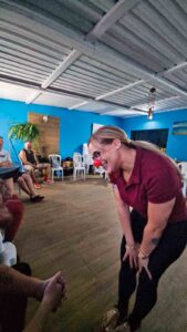 Um dos momentos centrais da programação foi o chamado Exercício do Ridículo, prática da palhaçaria clássica em que os participantes têm o primeiro contato com o nariz de palhaço. Ao som de músicas circenses, cada aluno interagiu com o público em silêncio, por meio do olhar e da presença, permitindo que emoções e sentimentos surgissem de forma espontânea. A atividade foi orientada pelo professor, com espaço para a criatividade individual de cada participante.