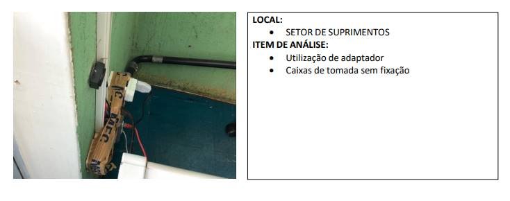 Instalação elétrica exposta, tomadas com polos derretidos, rejunte com mofo também foram identificados no documento, elaborado em 2021, que apresentou os problemas. De lá para cá, não teria havido reformas estruturantes, apenas pintura de paredes, de acordo com uma fonte ouvida pelo Metrópoles.
