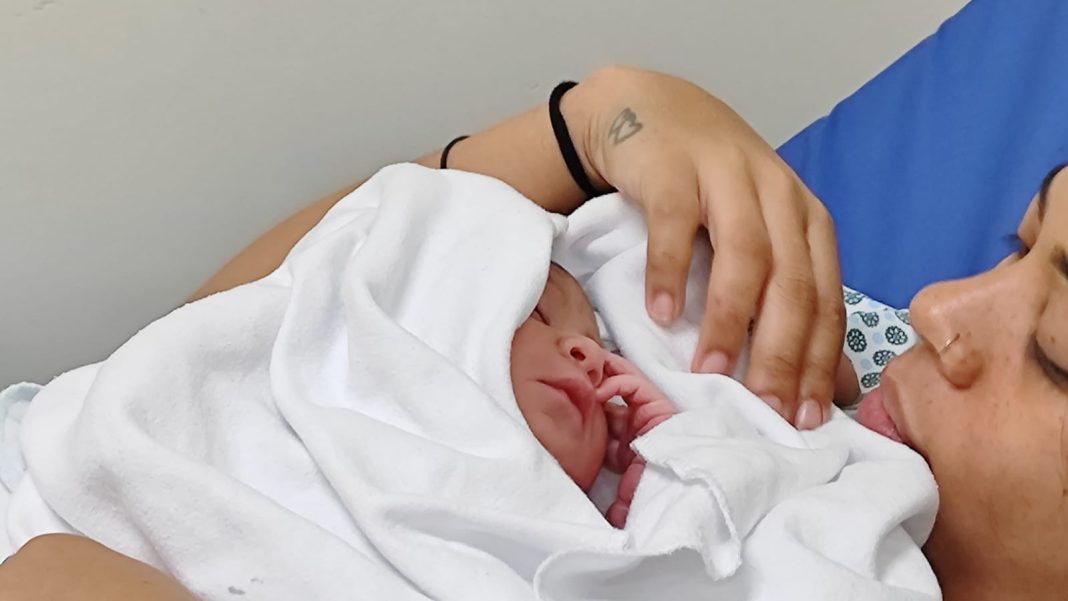 Daniela Cordeiro, de 27 anos, teve um trabalho de parto longo, com mais de 11h de duração. Apesar de em alguns momentos achar que não teria mais forças para continuar, conseguiu dar à luz na posição que achava mais confortável e não teve nenhum tipo de laceração.