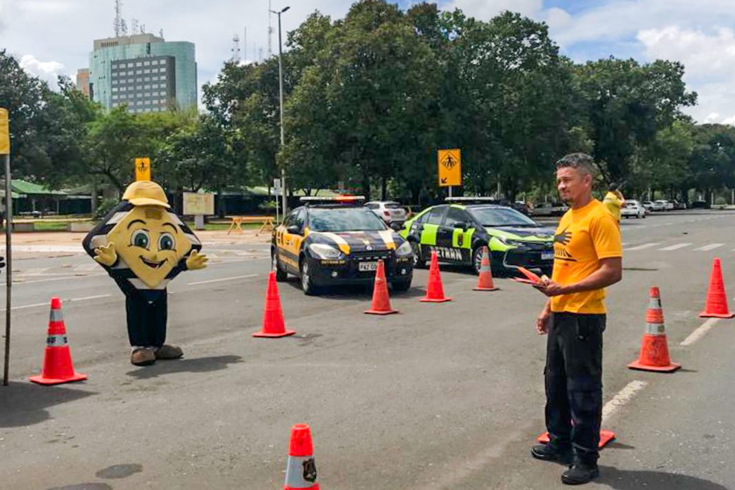 Detran promove ações educativas com o mascote Segurito para conscientizar motoristas contra riscos de acidentes no período de chuvas | Foto: Divulgação/Detran-DF