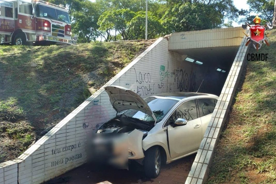 Um acidente de trânsito impressionou os moradores da Asa Sul, na tarde desta sexta-feira (15/12). Por volta das 14h50, uma motorista, de 28 anos, perdeu o controle do carro que dirigia e despencou em uma das passagens subterrâneas do Eixão, na altura da Quadra 115. Por sorte, não havia pedestres no local no momento do acidente.