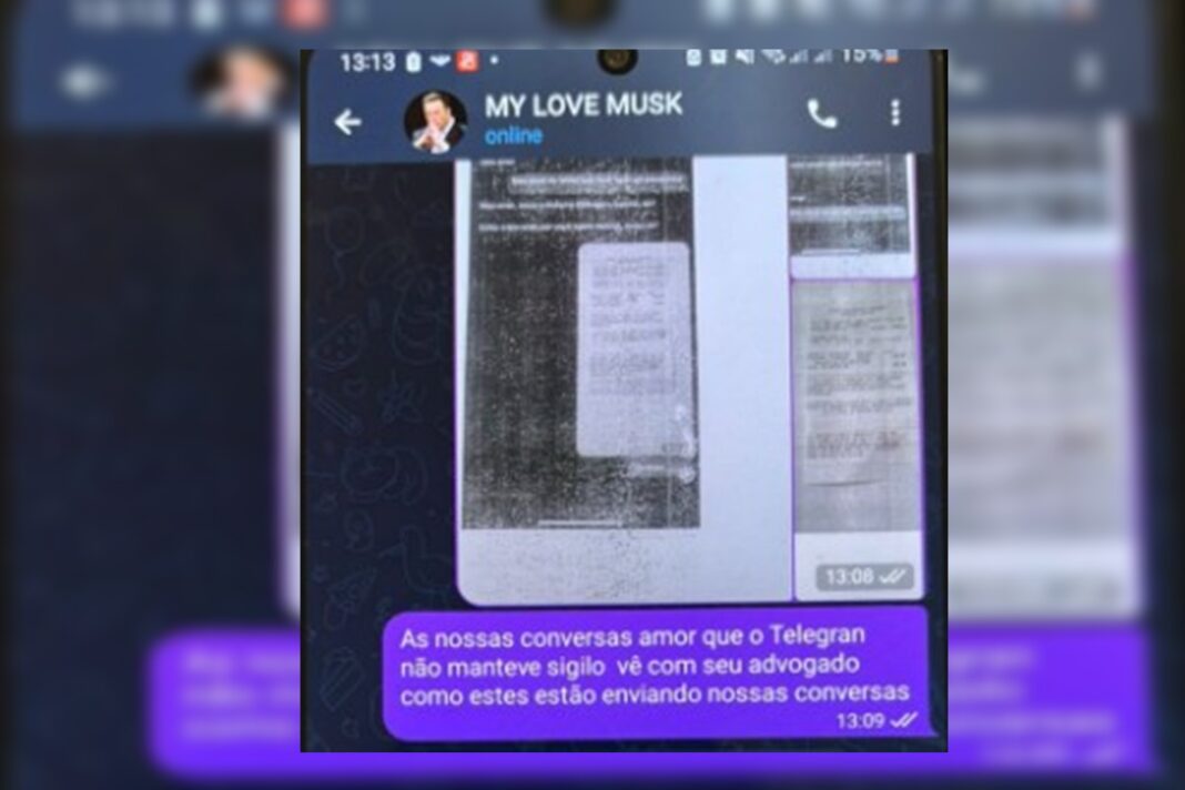 A idosa salvou o número do golpista como “My love Musk”. O bate-papo era mais comum pelo Telegram. Nas mensagens, eles falavam que o aplicativo era mais seguro para poderem conversar.