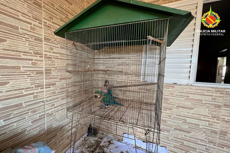 Militares do Batalhão de Polícia Ambiental (BPMA) apreenderam, nesse sábado (15/10), duas araras criadas ilegalmente em cativeiro, em Samambaia.