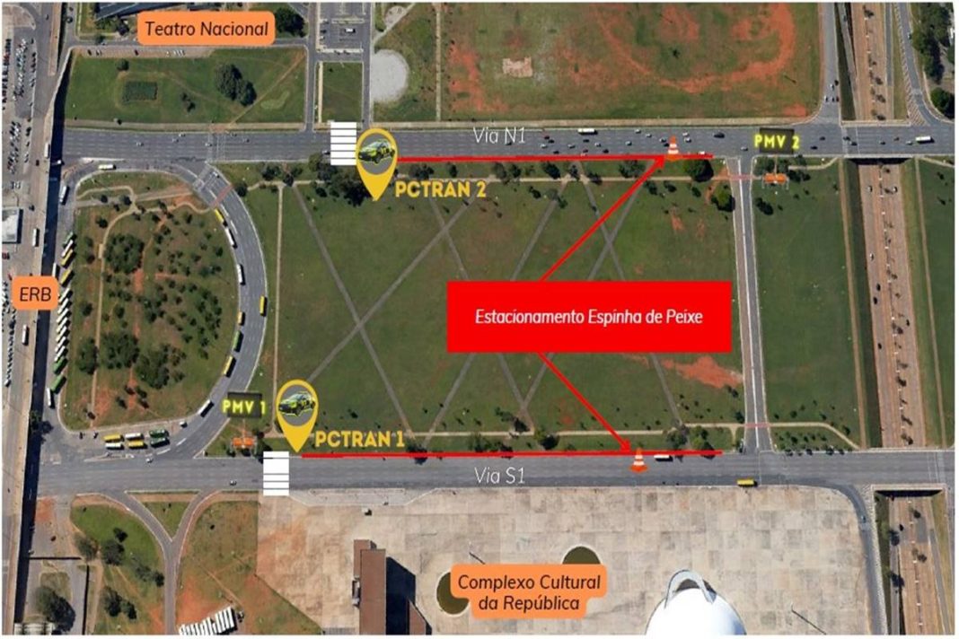 Ainda nestas duas vias, será permitido estacionar ao longo do canteiro central, no lado esquerdo, de acordo com as orientações dos painéis luminosos e dos agentes de trânsito que estarão no local durante a realização do evento.