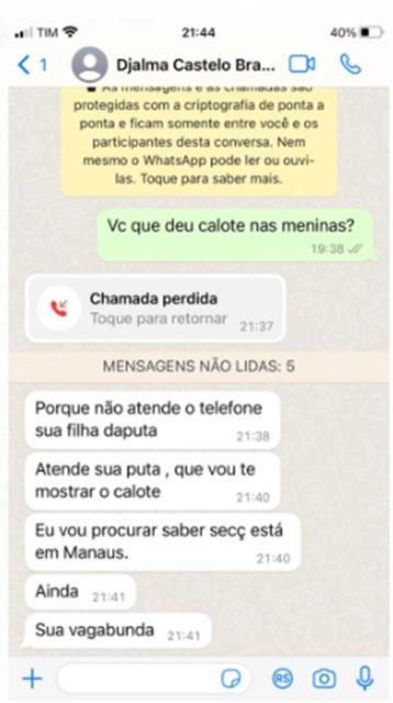 Os dias que se seguiram foram de ameaças por meio do WhatsApp. “Tive de deixar a minha casa, pois ele ameaçou mandar pessoas atrás de mim. Me ofende diariamente, me xingando dos piores nomes possíveis. Estou pedindo medidas protetivas contra ele. Existem câmeras espalhadas por toda aquela casa, inclusive nos banheiros”, revelou.