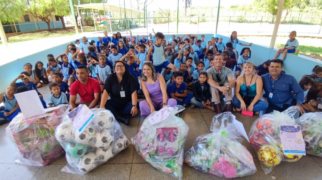Alunos da Escola Classe Cachoeirinha, no Núcleo Rural Nova Betânia, em São Sebastião, na manhã desta quarta-feira (18), receberam do Governo do Distrito Federal (GDF), por meio da Empresa de Assistência Técnica e Extensão Rural do Distrito Federal (Emater-DF) e da Regional de Ensino de São Sebastião, brinquedos em comemoração ao Dia das Crianças.