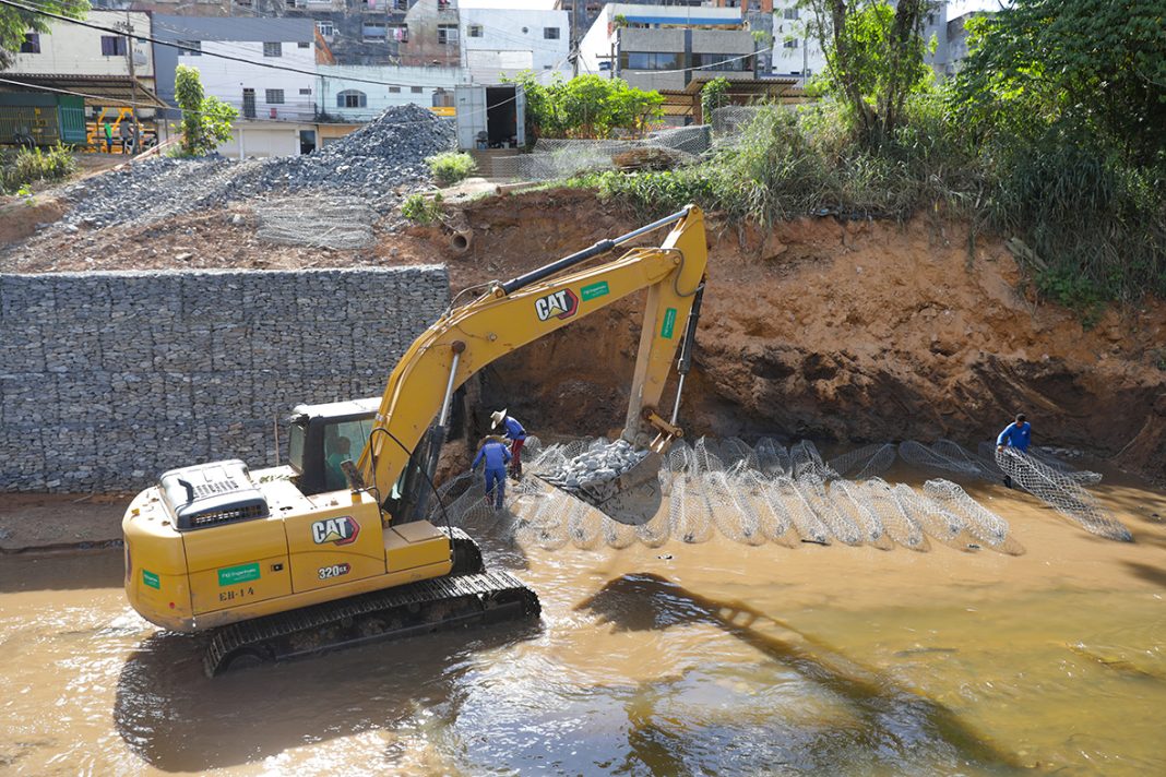 Segundo o engenheiro da empresa contratada para a obra, Marcos Tibães, as estratégias servem para promover a contenção do solo, estabilização dos taludes e controle de erosões. “O maior objetivo é evitar inundações e erosões, fazendo com que a água não avance nas casas das pessoas”, esclarece. “O alargamento do rio visa evitar que a água suba acima da ponte, enquanto os gabiões tornam a área resistente a possíveis interpéries”, destaca o engenheiro da empresa contratada para a obra, Marcos Tibães.